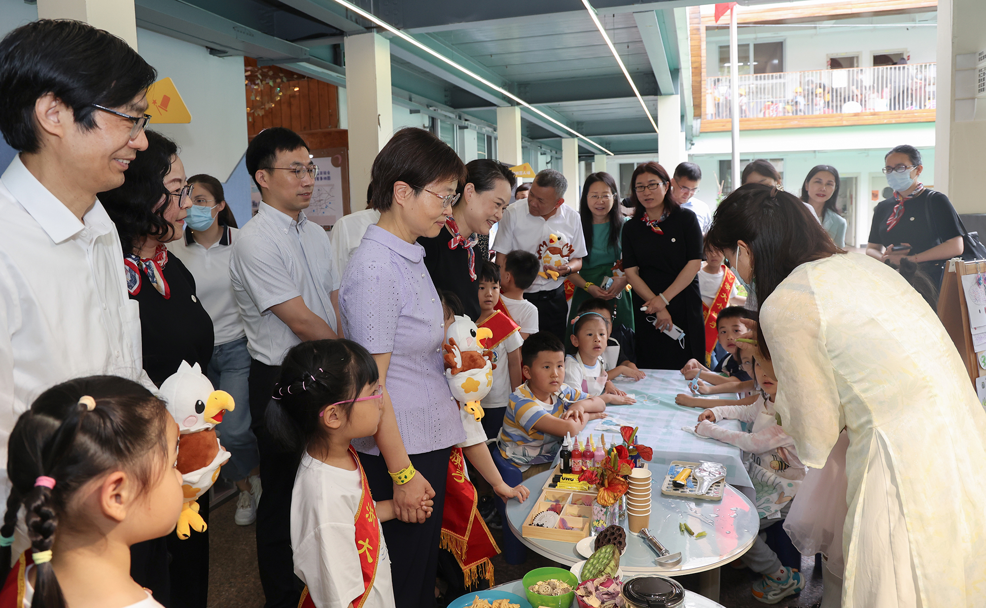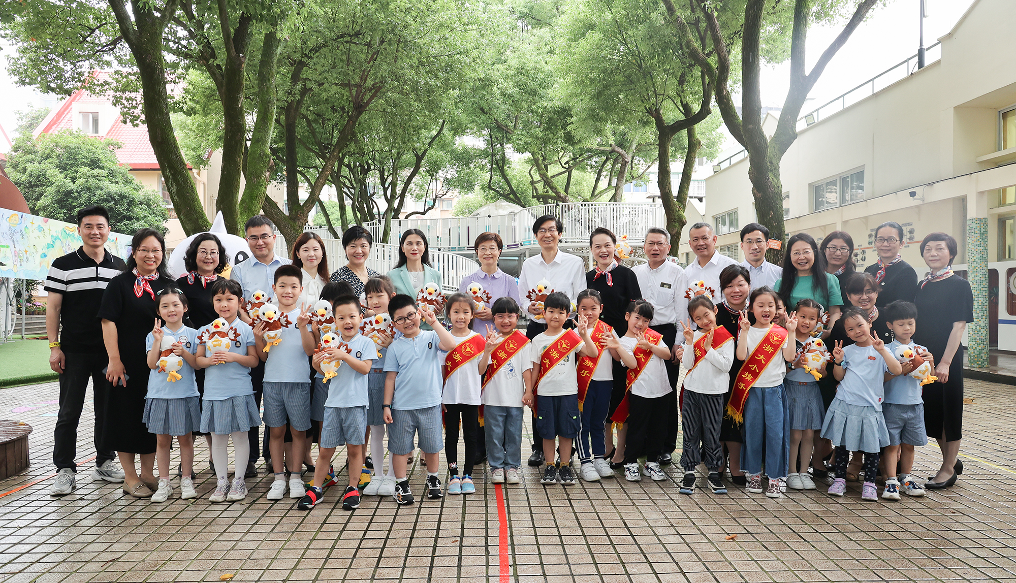 5月31日上午,在“六一”国际儿童节来临之际,浙江大学副校长吴健一行来到浙江大学幼儿园玉泉分园、实验园走访慰问,向孩子们致以节日的祝福,向老师们表示亲切的慰问与衷心的感谢。校工会主席楼成礼,党委办公室、校长办公室副主任黄云平,人力资源处副处长周礼、人才工作办公室副主任马晨华、校工会副主席李民和党颖,以及后勤集团董事长、总经理万春根,党委副书记、纪委书记刘辉文,党政办主任朱玥腾等陪同慰问。