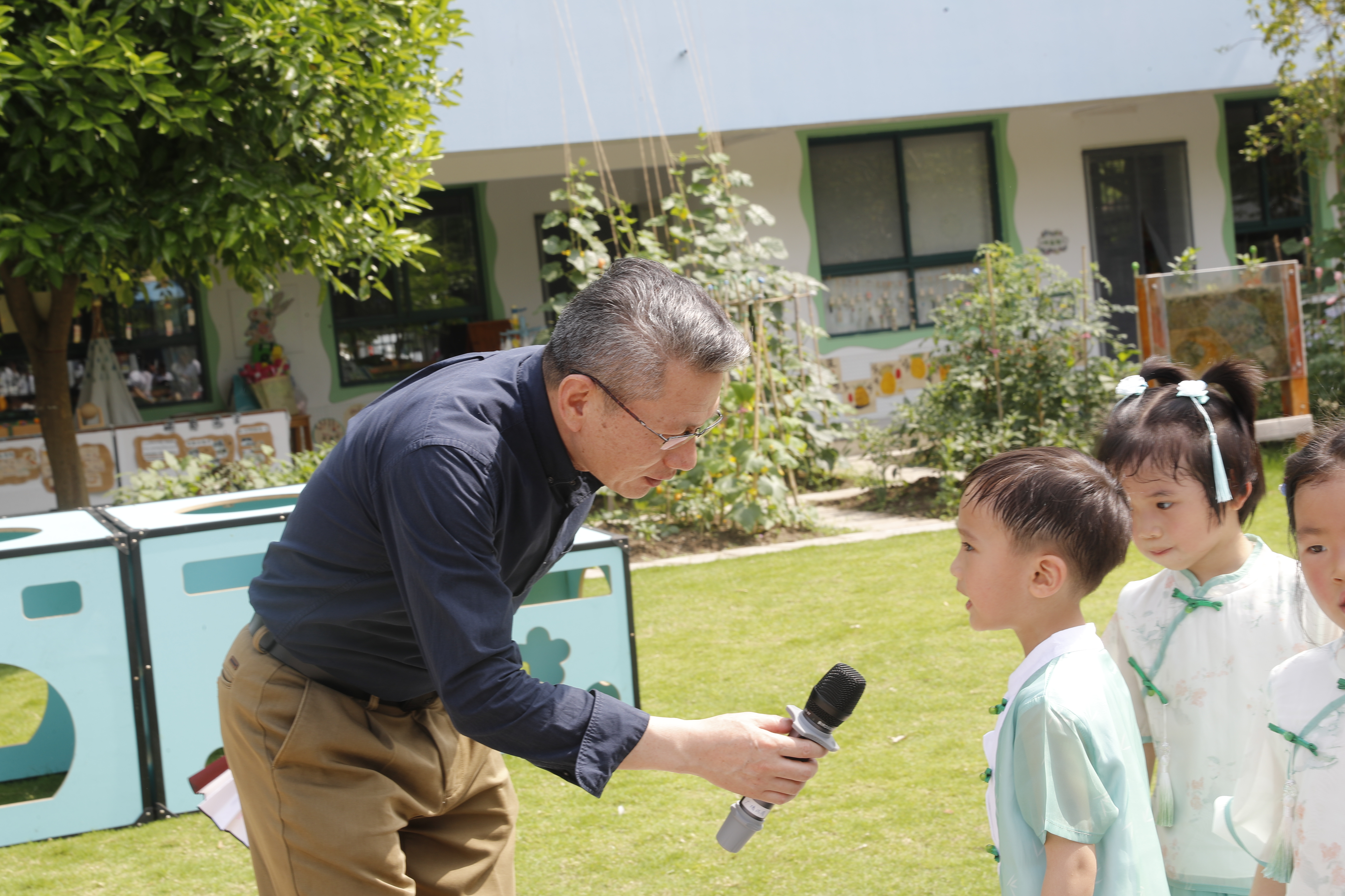 吴健副校长一行先后参观了颇具“学术气”的博物长廊、“情暖六一 让爱童行”爱心义卖、人工智能课堂、机器狗“绝影”秀等,与热情的孩子们拥抱问候,与热心的助教家长亲切交流,在欢声笑语中感受童年的热烈与美好。吴健副校长还向中心主任周熔了解了教职工子女入托、幼儿园运营情况等问题,十分关心幼儿园的可持续发展。校工会副主席陶思丰一行于5月30日上午来到华家池分园代表学校送上了温馨的节日祝福,并表示幼儿是祖国的花朵、民族的未来,让孩子们安全、健康、快乐地成长是大家最大的心愿!