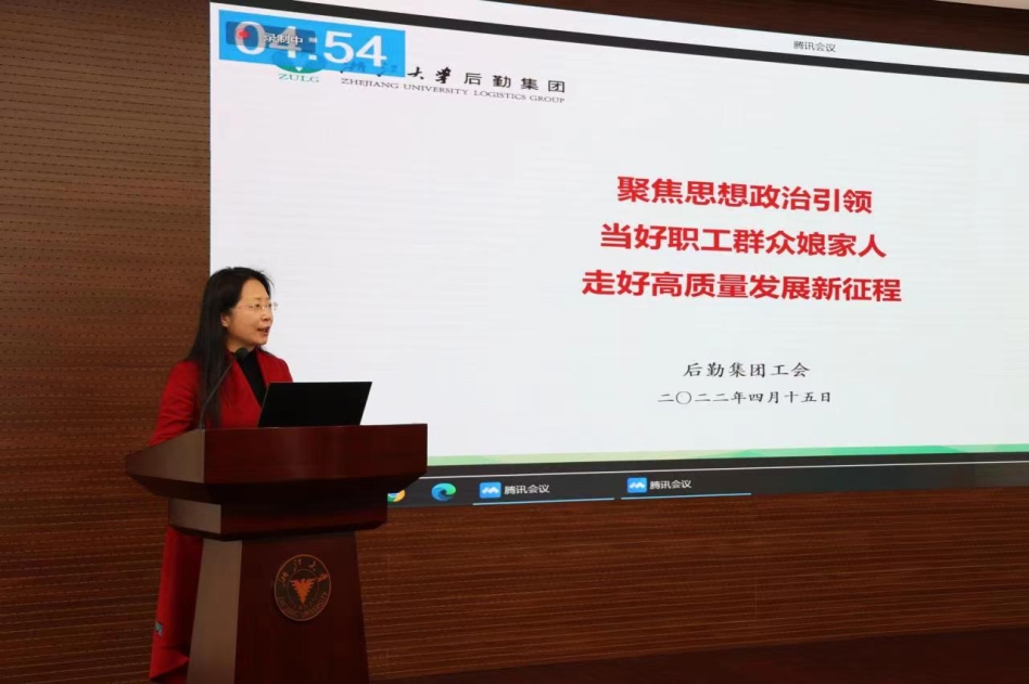 4月15日,在新一届浙江大学院级工会主席会议上,后勤集团党委副书记、工会主席刘辉文以《聚焦思想政治引领,当好职工群众娘家人,走好高质量发展新征程》为题进行了汇报,共有33家院级工会通过线上线下相结合的方式参评工会工作先进集体。