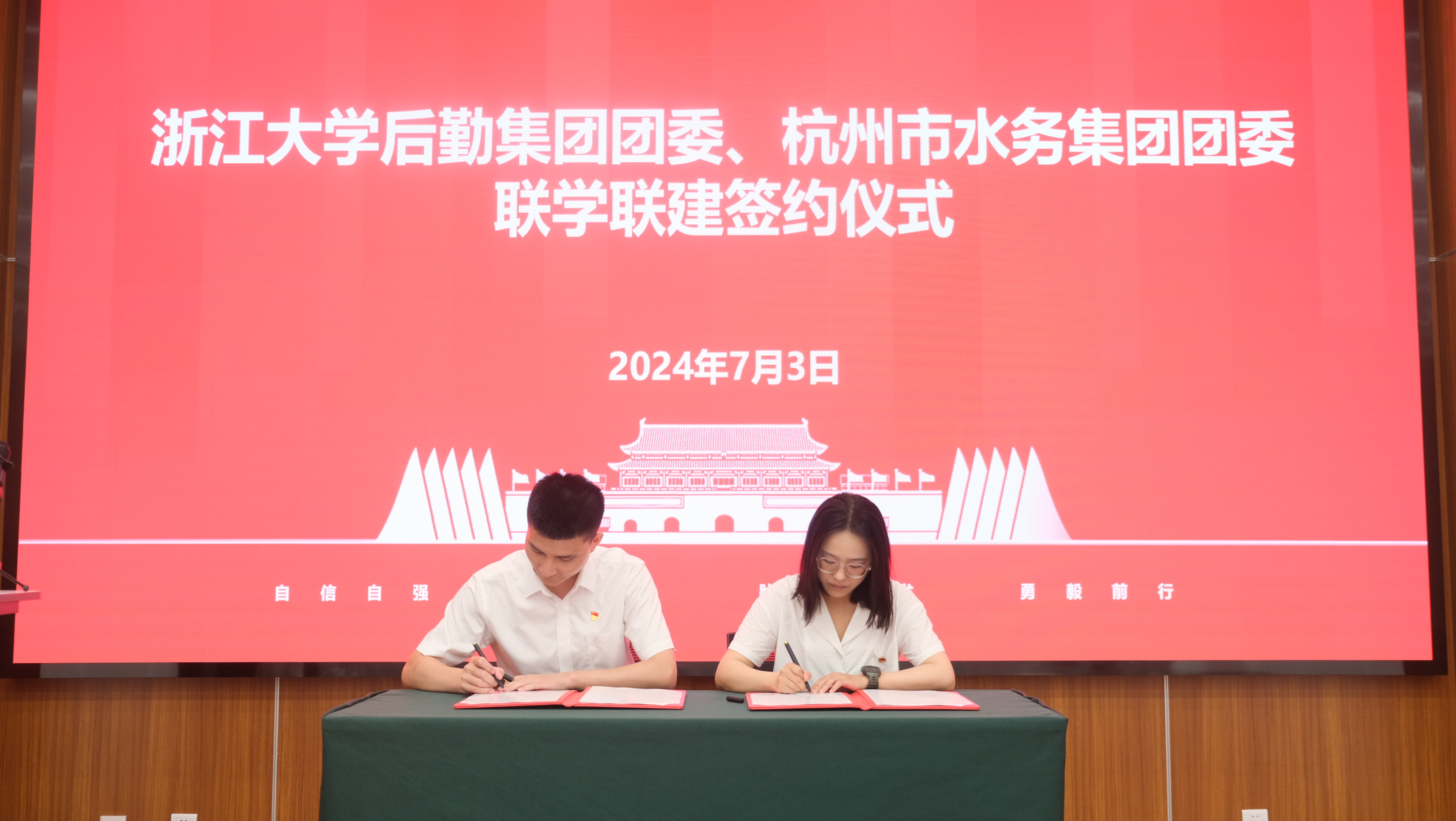 在经验分享环节,双方共5家“青年文明号”集体从创建背景、创建宗旨、特色活动、创建成果等多方面汇报创建工作开展情况,杭州水务工程建设有限公司团支部分享市级五四红旗团支部建设经验。集团团委与杭州市水务集团团委共同签订了《联学联建协议书》。