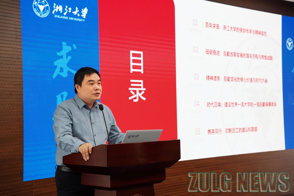 高略以《传承求是精神,筑梦后勤担当》为题,为新员工们上了一堂“入职第一课”。他从浙江大学的使命传承与精神底色出发,详细阐释了后勤服务为本、精益求精、协同合作、守正创新的精神文化谱系,勉励大家要跑好建设一流后勤服务保障体系接力赛,并提出了厚植情怀、精进本领、严守纪律、融入团队、坚韧不拔、创新创造等六点期望。