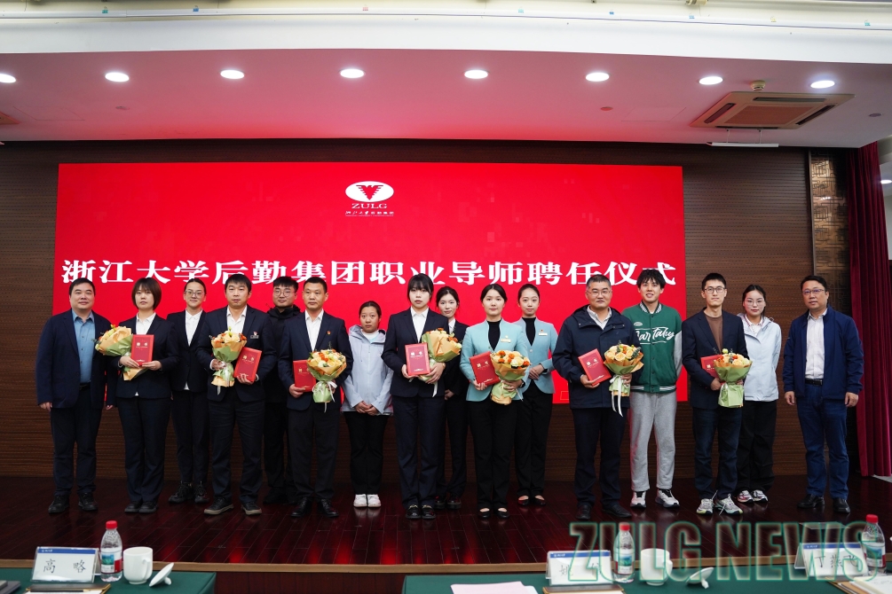 现场还举行了职业导师聘任暨师徒结对仪式。姚信与高略共同为来自水电中心的乔鹏华,科教中心的朱璇婧,饮食中心的陈平、燕憨、时统永,求是物业的汪珂、宗文静颁发聘书,七位新员工分别向自己的师父送上鲜花。