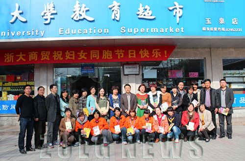 3月8日,为纪念国际劳动妇女节,商贸服务中心向全体女职工赠送健康书籍 并在玉泉教育超市门口举行了简短而热烈的赠书仪式。