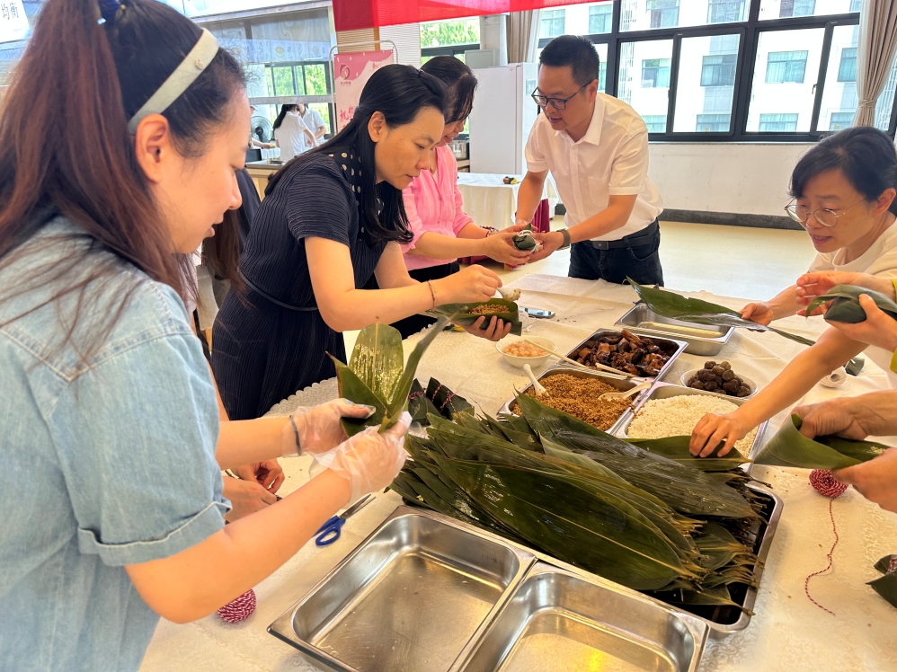 粽子,作为端午节的必备美食,吸引了公寓内众多中外教师及家属的积极参与。尽管大家手法略显生疏,但热情高涨。大家一边摸索技巧,一边互相交流心得,欢声笑语不断。