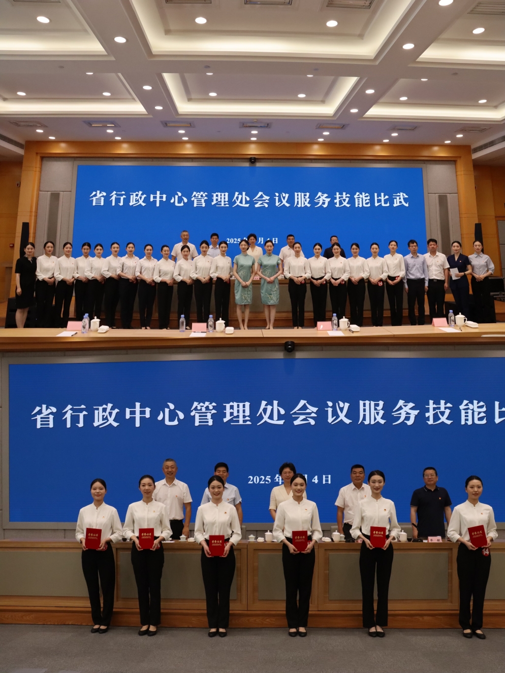 为提升浙江省行政中心会务服务保障质量,助力机关运行保障现代化,6月4日下午,科教服务中心会务中心在浙江省机关事务局省行政中心管理处成功举办会议服务技能比武活动。浙江省行政中心管理处处长曹英姬、科教服务中心主任徐小华等相关领导出席了本次活动。