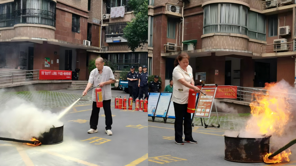 活动的第一个环节是灭火器使用学习演练。经过讲解和示范,员工们轮流操作练习。现场,模拟了初期火灾场景,“提、拔、握、压”,大家牢记口诀,按步骤实践,确保动作规范、操作无误,成功使用灭火器扑灭火源。