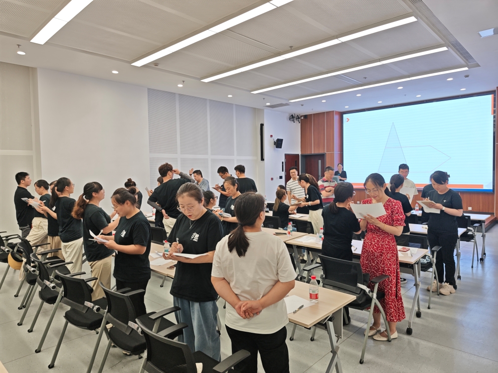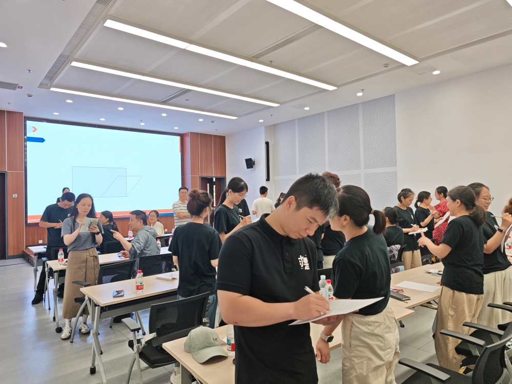 在重点讲解的面对面沟通环节,何老师创新引入中医“望闻问切”四诊法则,将其转化为“看听问说”的现代沟通要诀。为深化理解,现场组织了极具启发性的“你说我画”互动练习:员工们两两配对,一人描述图形特征,另一人根据指令作画。实践结果显示,仅少数小组能准确还原示例图形,这一生动对比直观揭示了沟通中信息传递的偏差现象。何老师随即结合各组表现,逐项剖析“观察、倾听、提问、表达”等核心技巧,使参训人员在互动体验中深刻体会到“望闻问切”沟通法则的精髓。