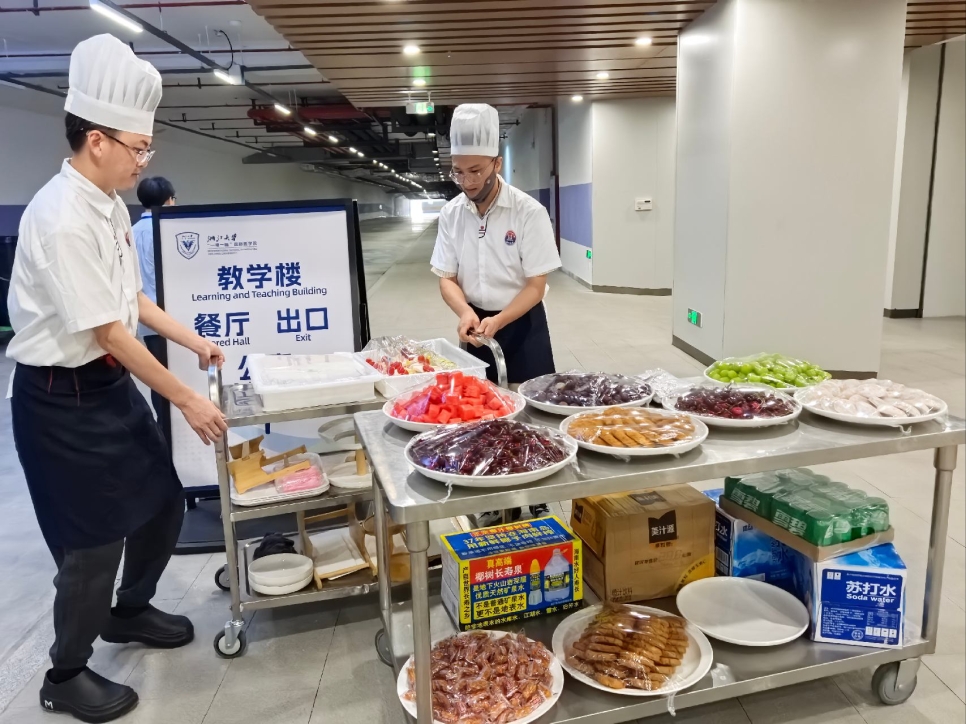 2025年7月4日至6日,浙江省抗癫痫协会学术会议在浙江大学“一带一路”国际医学院顺利举办。金义项目部浙大国际医学院食堂组建的餐饮保障团队,联合从义乌工商学院调派的4名人员,凭借专业、细致的服务,圆满完成了会议的餐饮保障任务,赢得了各方的高度认可。