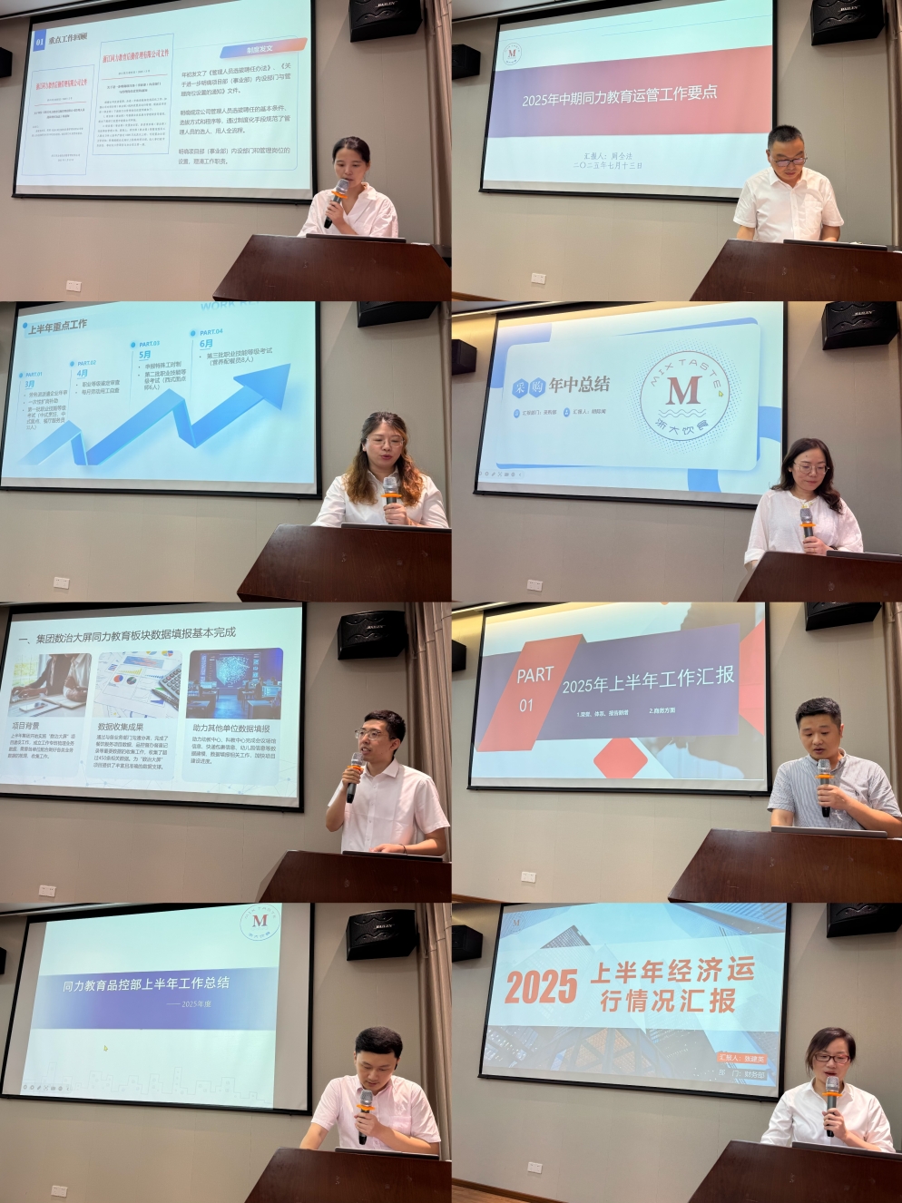会上,各项目部(事业部)及办公室、人事、信息化、品控、运管、技术、采购、商务、财务部等职能部门负责人汇报了上半年工作特色及下半年工作思路。各项目部经理围绕食堂运营、项目拓展、团队建设、精细化管理举措等多个方面,在会上对上半年的工作进行了经验分享与汇报交流。职能部门针对劳动用工风险、安全卫生检查、采购流程规范、信息化建设要求等事宜作重要事项提醒。