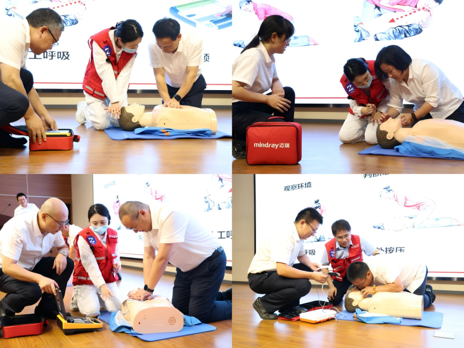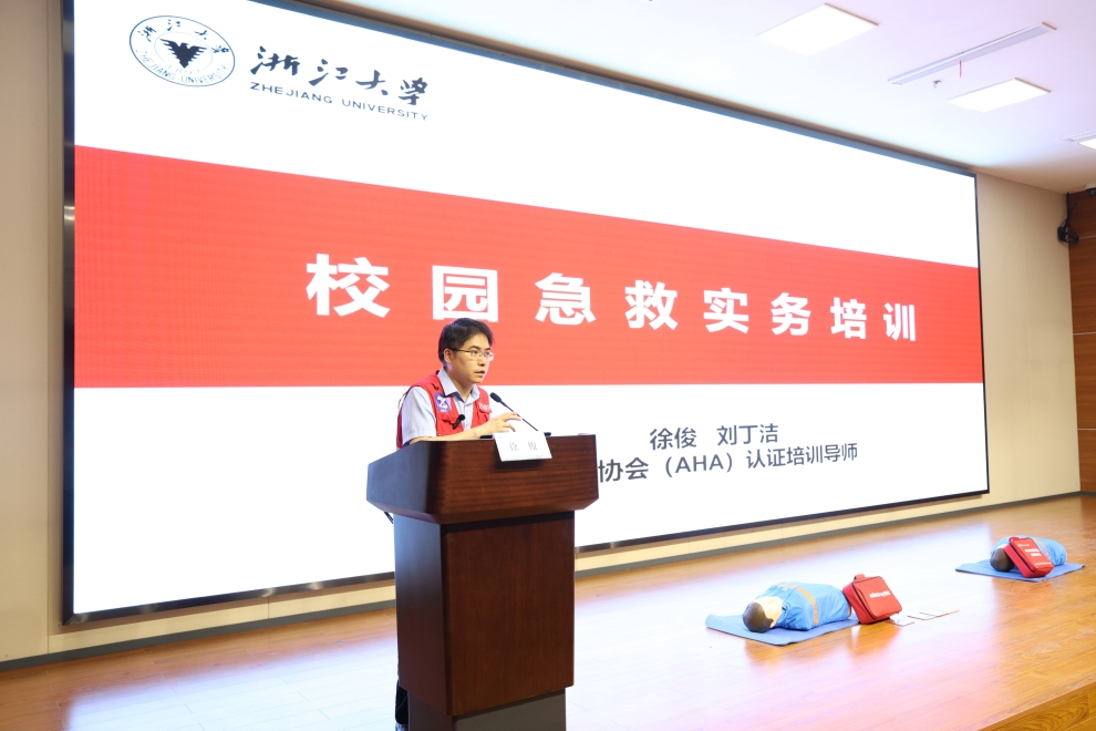 在本次急救技能培训课程中,浙江大学校医院副主任医师、美国心脏协会(AHA)培训导师徐俊通过“理论讲解+情景模拟”的方式,现场演示心肺复苏、AED操作等实用技巧。通过实际操作,有效强化学员的应急处置能力。