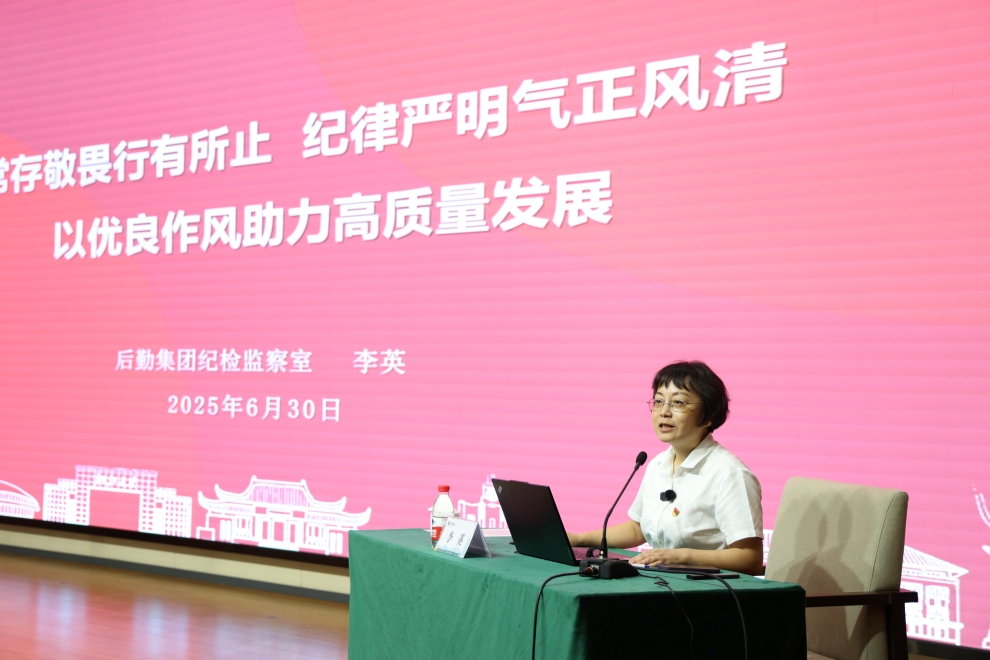 李英以《常存敬畏行有所止 纪律严明气正风清 以优良作风助力高质量发展》为题作专题党课。她围绕纪律严明是“党的光荣传统和独特优势”“八项规定是长期有效的铁规矩、硬杠杠”“以‘敬畏之心’自警,在严以律己中坚守初心使命”等方面展开讲解。