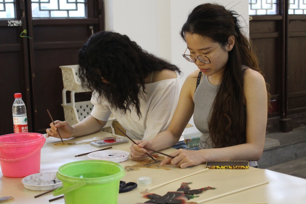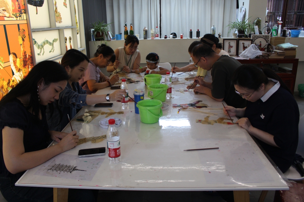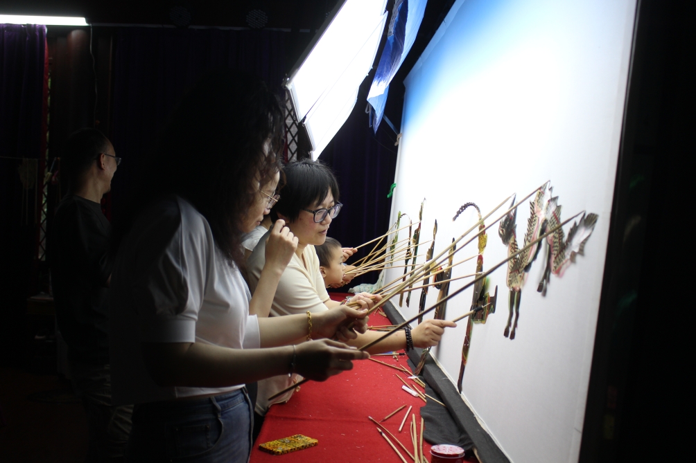 大家围坐在桌前,专注地为皮影人物着色、勾勒细节。经过一番精心绘制,一个个独一无二的皮影人偶在大家手中诞生。从观赏到亲身体验,非遗艺术变得可触可感,更显珍贵。