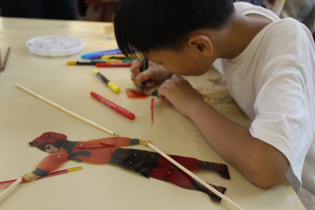 活动的最后,老师们还体验了手工制作皮影人偶。