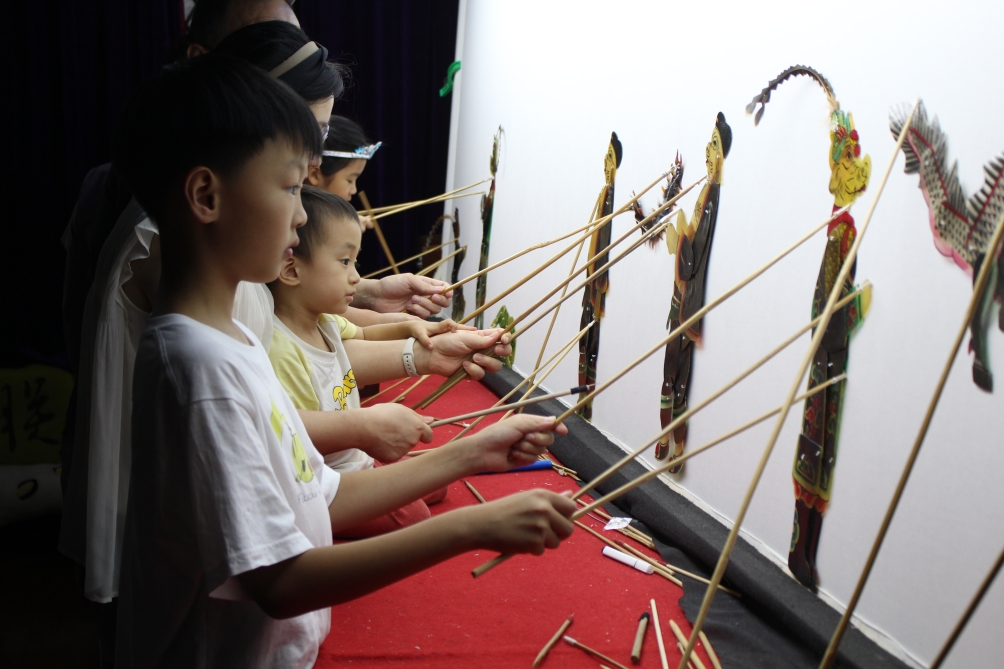 三根竹竿,一方白幕,看似简单的道具,操作起来却并不容易。“孙悟空”翻跟斗、“猪八戒”挥钉耙……在专业艺人手中行云流水的动作,到了大家手中变得不再听使唤。