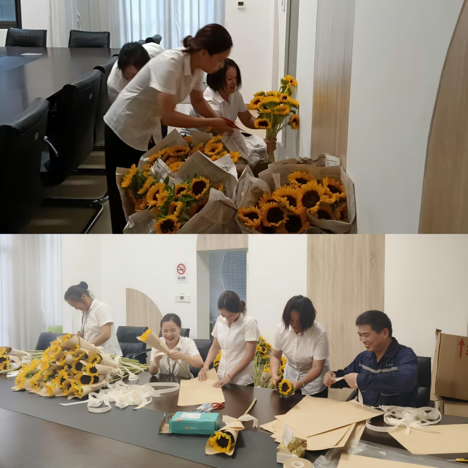 在紫金西苑,项目部同样开展了系列暖心活动。节日当天,物业员工们早早开始忙碌。包装鲜花、布置场地,大家发挥所长,分工协作,各项准备工作有条不紊。