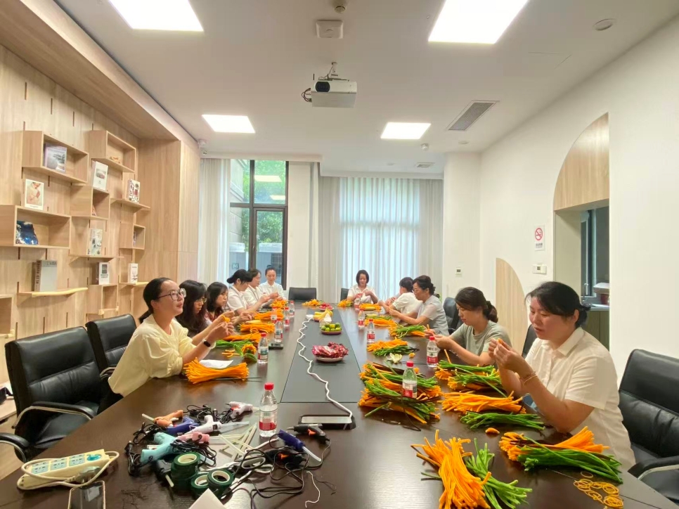 DIY花束活动也吸引了众多教师业主积极参与。在物业员工的介绍指导下,老师们纷纷发挥创意,使用扭扭棒、丝带等材料,亲手制作属于自己的花束。老师和物业员工一齐围坐桌前,欢声笑语中洋溢着节日的欢乐与温馨,在不知不觉间便拉近了彼此的距离。