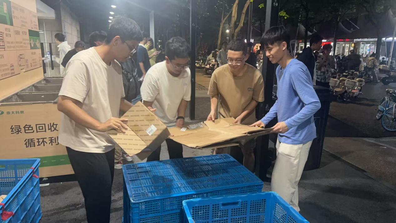 劳动实践活动进入第二周,聚焦“绿色邮递”主题,同学们自由组合为4-5人/组的实践小组,分批次在白沙邮递服务站开展绿色纸箱回收实践。各小组在服务站门口设置了临时绿色回收点,小组成员主动引导取件同学将包裹纸箱投入“绿动箱”。随后,同学们对回收纸箱进行仔细筛选,挑拣出可二次使用的完整纸箱与可回收利用的泡沫填充材料。接着,大家以规范手法压平纸箱,尽可能保持边缘完整,并通过电子秤称重或人工计数的方式统计回收数量,同步填写《绿色回收台账》,详细记录回收时间、地点及可二次使用的纸箱数量。此次实践不仅让同学们亲身体验了环保工作的具体流程,更让大家意识到快递包装回收对推动校园绿色转型的重要意义。不少同学表示,今后会更加注重快递纸箱的循环利用,以实际行动践行环保理念。