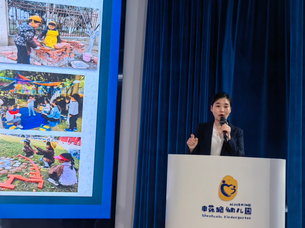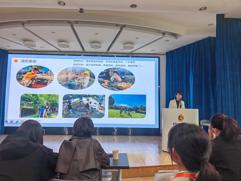 副园长赵玲玲则聚焦《场域融通,支持幼儿有意义学习》,以具体案例展现园所在“场域融通”理念下的系列创新实践成果以及如何借助科学的空间规划激活幼儿学习潜能。在空间规划层面,园所着力推进室内外场景的多元联通,打破传统区域的物理壁垒,精心创设出可自由切换、自主探索的“流动式”探索场,让幼儿在不同空间中连贯开展探究活动;在时间维度上,园所实现学习时间的灵活融通,通过设计连续性的探究任务打造“持续性”成长境 ,让孩子们的每一段学习过程都能形成完整的成长闭环。