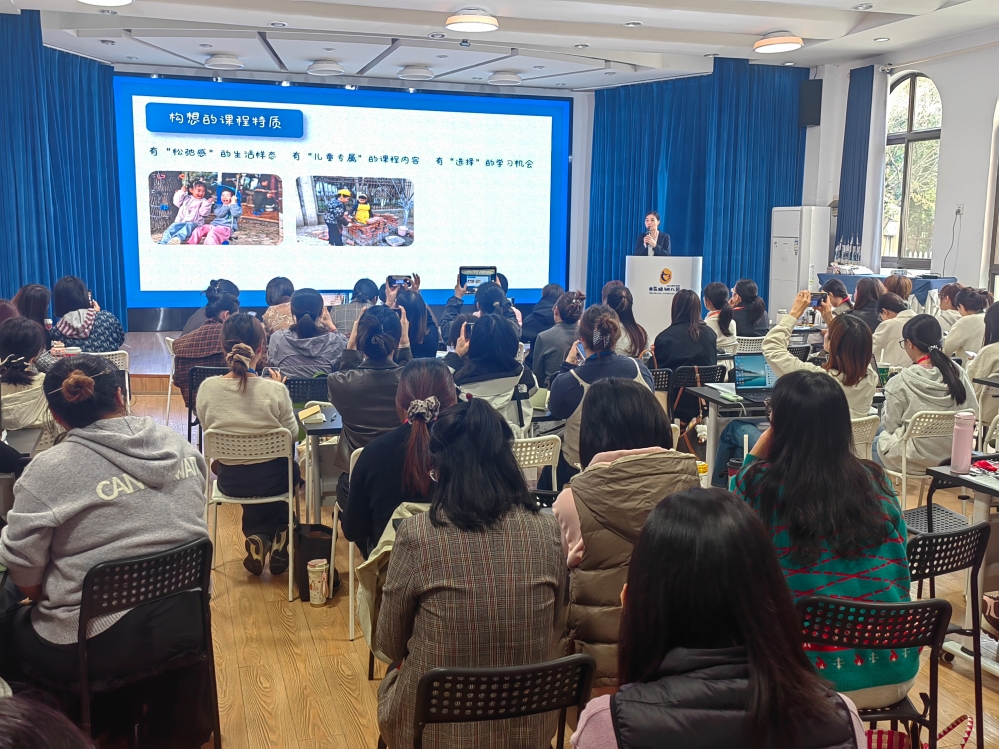 下午,申花路幼儿园园长严秋珍以《实现你的想法吧》为主题展开分享,围绕构想“松弛感”的生活样态、打造“儿童专属”的课程内容、提供有“选择”的学习机会的教育图景等方面展开阐述,并依托园内“小创客养成”课程提出一套成熟适配的课程学习模式,从学习场域的融通、学习样态的拓展、学习环境的重构、学习过程的监控等方面系统梳理申花样态 ,促进幼儿有意义的学习。