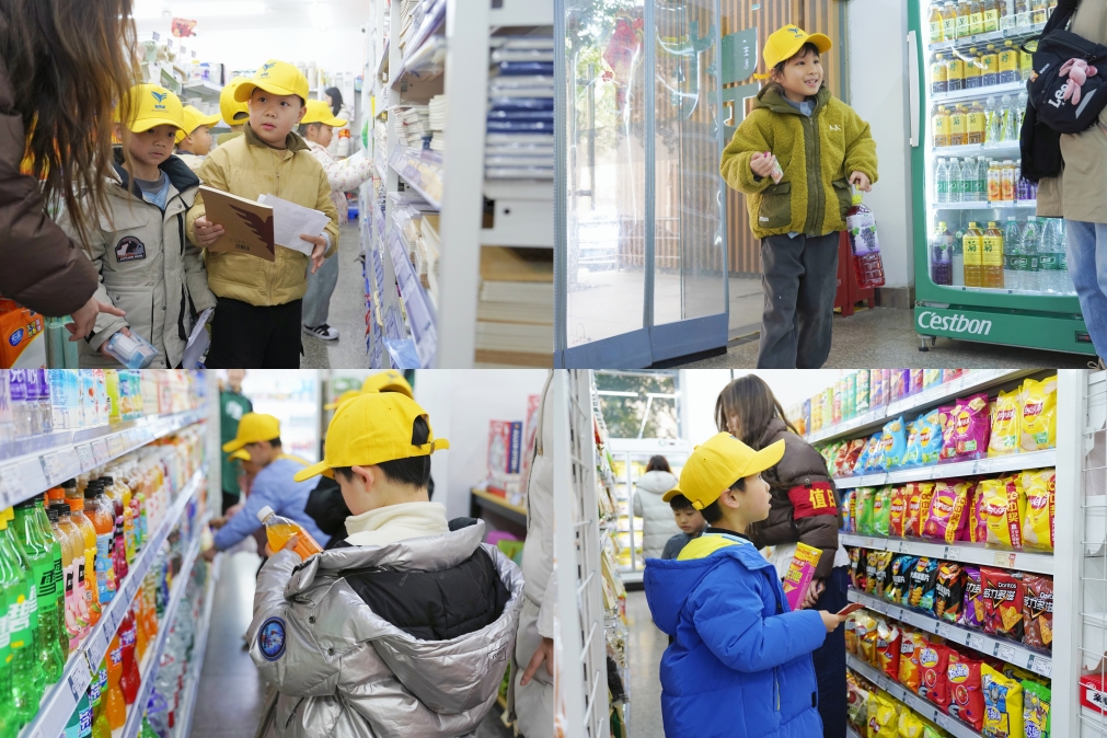 活动开始后,各班依次入场,小朋友们明确选购目标与预算,在工作人员的引导下走到对应货架区域。他们有的认真比对价签、计算花费,有的查看保质期、与同伴讨论,逐渐学会理性选择。
