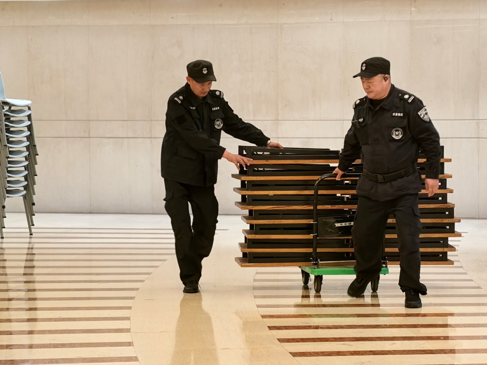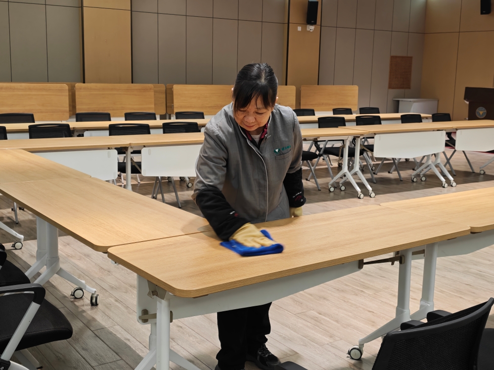 活动现场气氛热烈,人头攒动,突击队的工作也毫不松懈。活动前,桌椅搬运、场地布置、深度清洁、宣传物料定制,每一道环节都提前到位、细致入微。活动中,保洁员穿梭于人群,以动态循环的作业方式守护场馆整洁;秩序员定点值守、及时引导,确保人流有序、秩序井然。活动后,场地复原与垃圾清运高效推进,做到当天全部收尾到位、现场恢复如初。