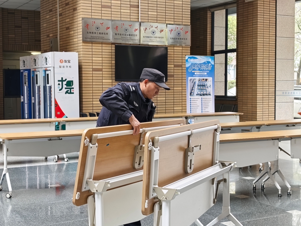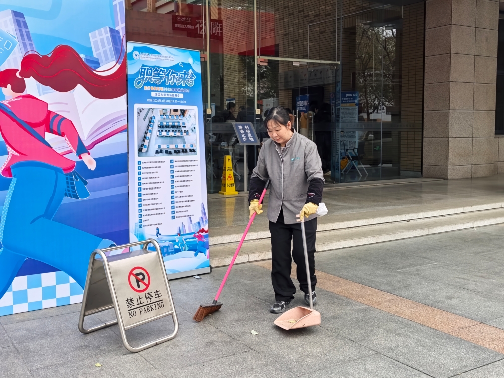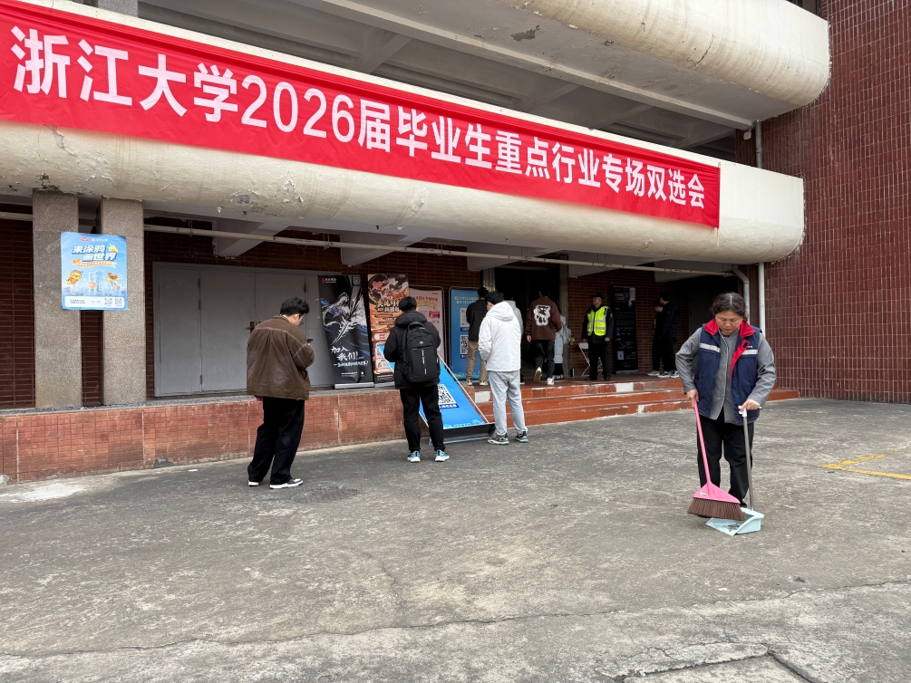 各场活动各有挑战。3月6日的浙江大学2026届毕业生重点行业专场双选会,规模庞大,现场参与人数达数千人,人流如织、熙熙攘攘。突击队提前谋划,抽调骨干人员组建专项保障团队。活动当天,大家各司其职、密切配合,为活动平稳运行提供坚实支撑。3月20日至21日,生物医学工程与仪器科学学院、计算机科学与技术学院与软件学院的专场招聘会接连举行,时间紧凑,衔接紧密。同时,活动场地前一天仍有其他活动举行,场地清洁与布置工作的时间更为紧迫。突击队员迎难而上,加班加点,保质保量完成任务,为招聘会顺利开展提供了有力保障。