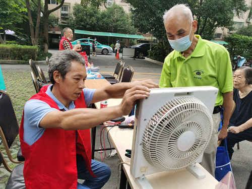 9月10日上午9时,志愿服务队员带着电脑、维修工具等提前来到求是社区,为教职工和退休教师们提供水电零修、日常家电维修、电脑维修等免费上门服务项目。活动一开始,便有住在求是村的老师前来报修,负责接单的同志将信息录入网络报修平台,并贴心地和他们约定好上门服务的时间。信息录入后,派单的同志根据老师们的报修情况,将电脑维修、风扇维修、筒灯安装等维修任务单按专业指派给相应的服务队员,让他们为老师解决故障。刚给金老师的笔记本电脑重装系统并细致地清理电脑底部散热器的灰尘后,紧接着,朱老师将她的手写板带来现场,说因为不能写字让她无法跟老伴沟通。根据朱老师的描述,服务人员拆开手写板拿出里面的纽扣电池去市场购买,成功解决了朱老师的手写板问题。此外一直以来深受好评的家电维修,今天依旧是“热点”,老师们前来报修微波炉、电视机等,负责维修的郑师傅凭借自己的维修技术,为老师们修好了一台又一台的家电。