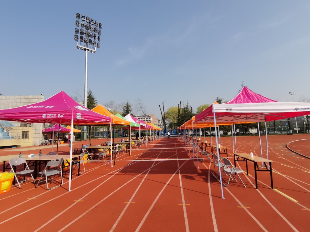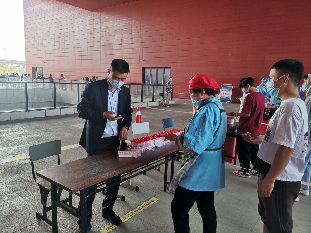自开学以来,浙大紫金港校区已开展了11场核酸检测工作。求是物业公司第一党支部党员积极参与场地布置任务,日夜兼程,奔走在安中灯光球场、体育馆、东田径场、西区管理学院停车场等各个场所,做好场地消杀、物资运输、帐篷搭建、警戒线贴标、指示牌安放、医废清运等各项工作,坚守岗位,充分发挥党员硬核力,彰显抗疫“奋战红”。