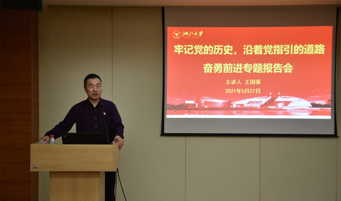 5月27日,水电中心党总支在紫金港校区校友楼西溪厅开展党课学习活动。此次党课特邀请后勤集团党史学习教育宣讲团成员王国强同志作了题为“牢记党的历史,沿着党指引的道路奋勇前进”的主题党课。水电中心党员及入党积极分子共计61名参加了党课学习。