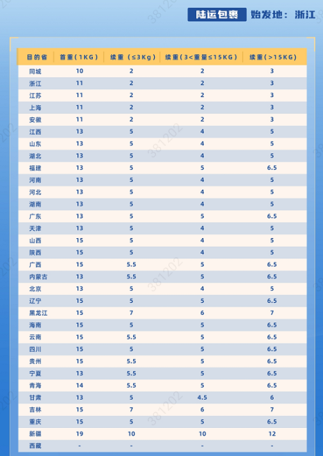 邮政速递EMS2022年毕业生包裹寄递价格表