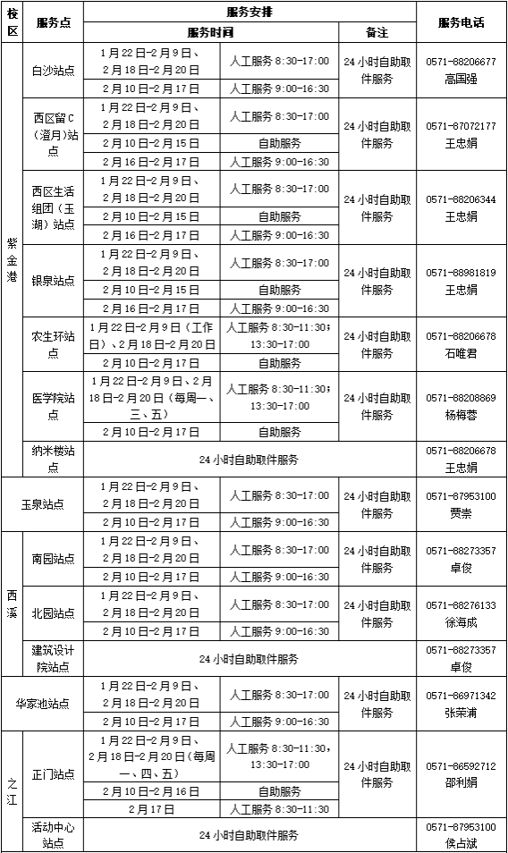 1月22日-2月18日,服务时间调整为:上午8:30-17:00(有会议根据会议时间延长)。