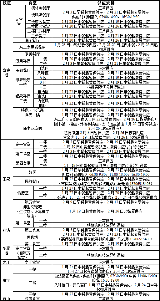 4.寒假期间各校区夜宵暂停,访客就餐安排见食堂门口具体通知。