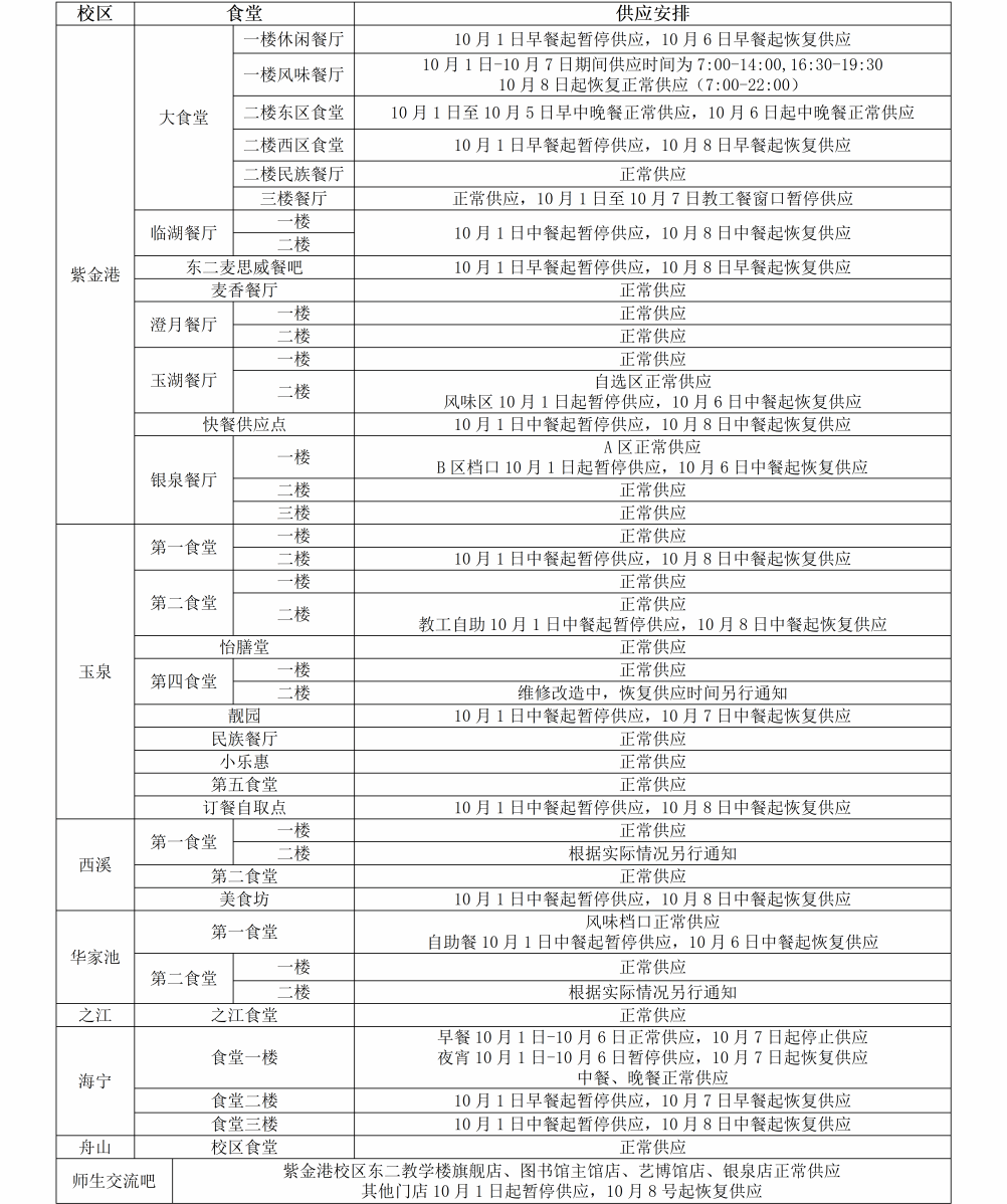 根据学校放假安排,现将各校区食堂供应安排通知如下: