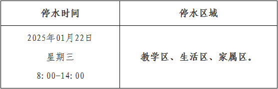 定于1月22日对之江校区进行水池清洗,需停水作业。届时,之江校区部分区域将停水。具体停水时间及区域如下: