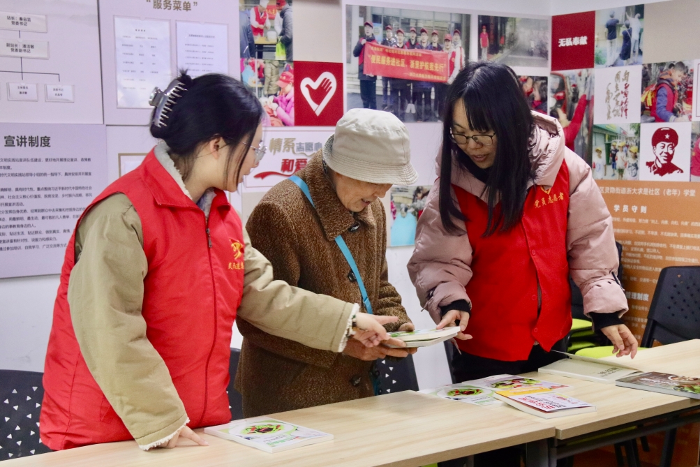 活动中,同力教育公司青年党员、团员志愿者团队走到居民们身边,担任起一对一伴读的角色:他们耐心、仔细地为年长居民解读手边的饮食保健书目,深入讲解居民们关心的食品问题。现场气氛和谐融洽,其乐融融。