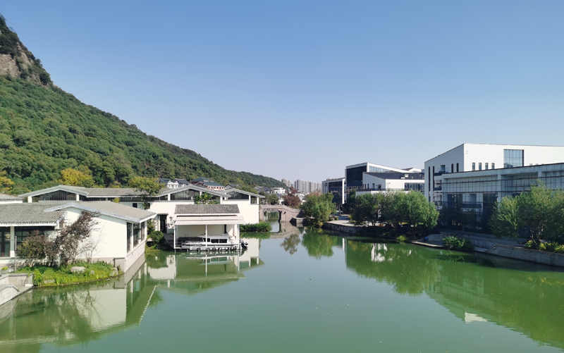 终点是湘湖金融小镇慢生活街,整个街区紧靠石岩山,东西走向,全长1300米,由32幢传统江南风格建筑组成。走入街角深处,有小桥流水、亲水平台,有造型水幕、雕塑作品,人入胜的是水系设计营造出“云雾缭绕”的体验。