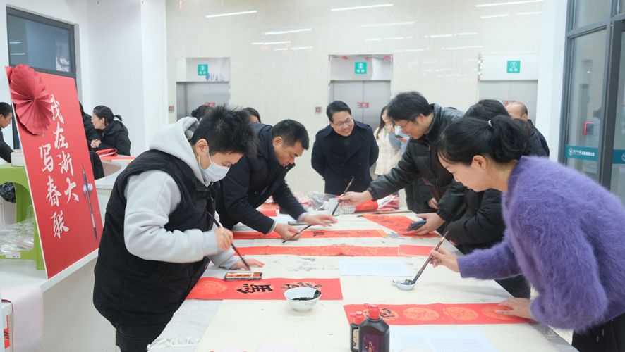 活动现场氛围喜庆热烈,一张张喜庆的红色“福”字整齐排列开来,一幅幅春联吸引着围观的员工工领福字、选春联。