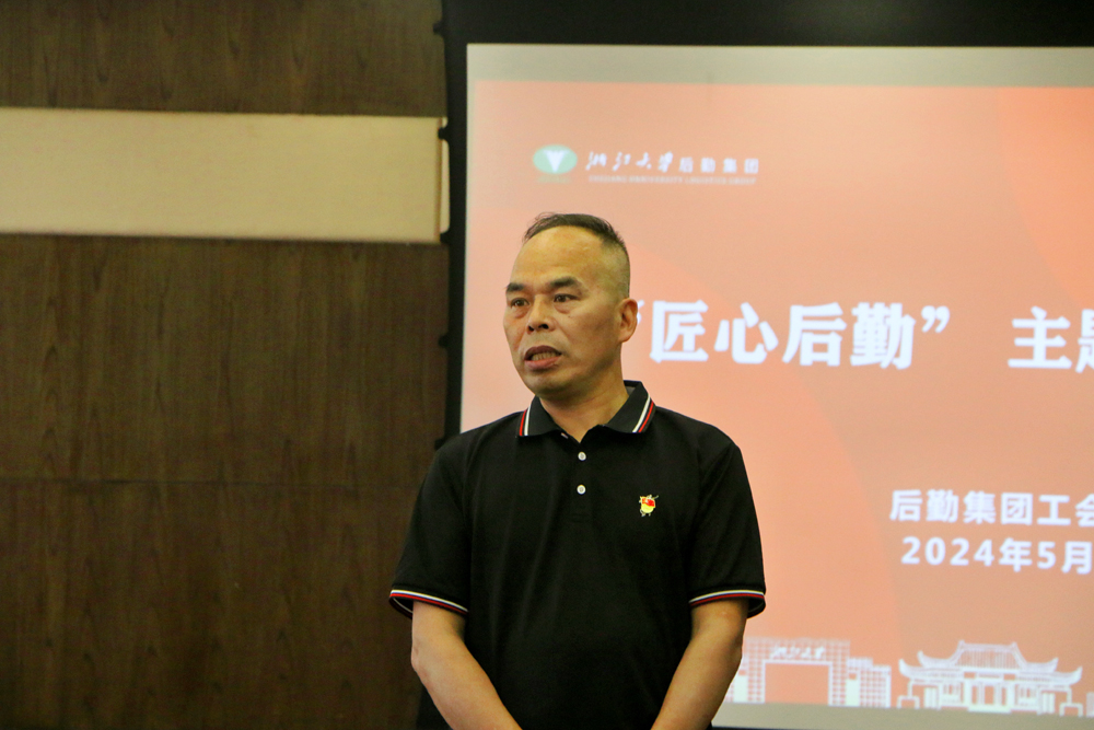 为弘扬劳模精神、劳动精神、工匠精神,推动后勤集团“职工‘业’校 匠心后勤”文化品牌建设,发挥先进典型示范引领作用,5月22日下午,“匠心后勤”系列主题宣讲活动在紫金港校区举行,集团工会干部和先进工作者、服务标兵、十佳员工等先进职工代表40余人参加,集团党委副书记、纪委书记、工会主席刘辉文出席活动。