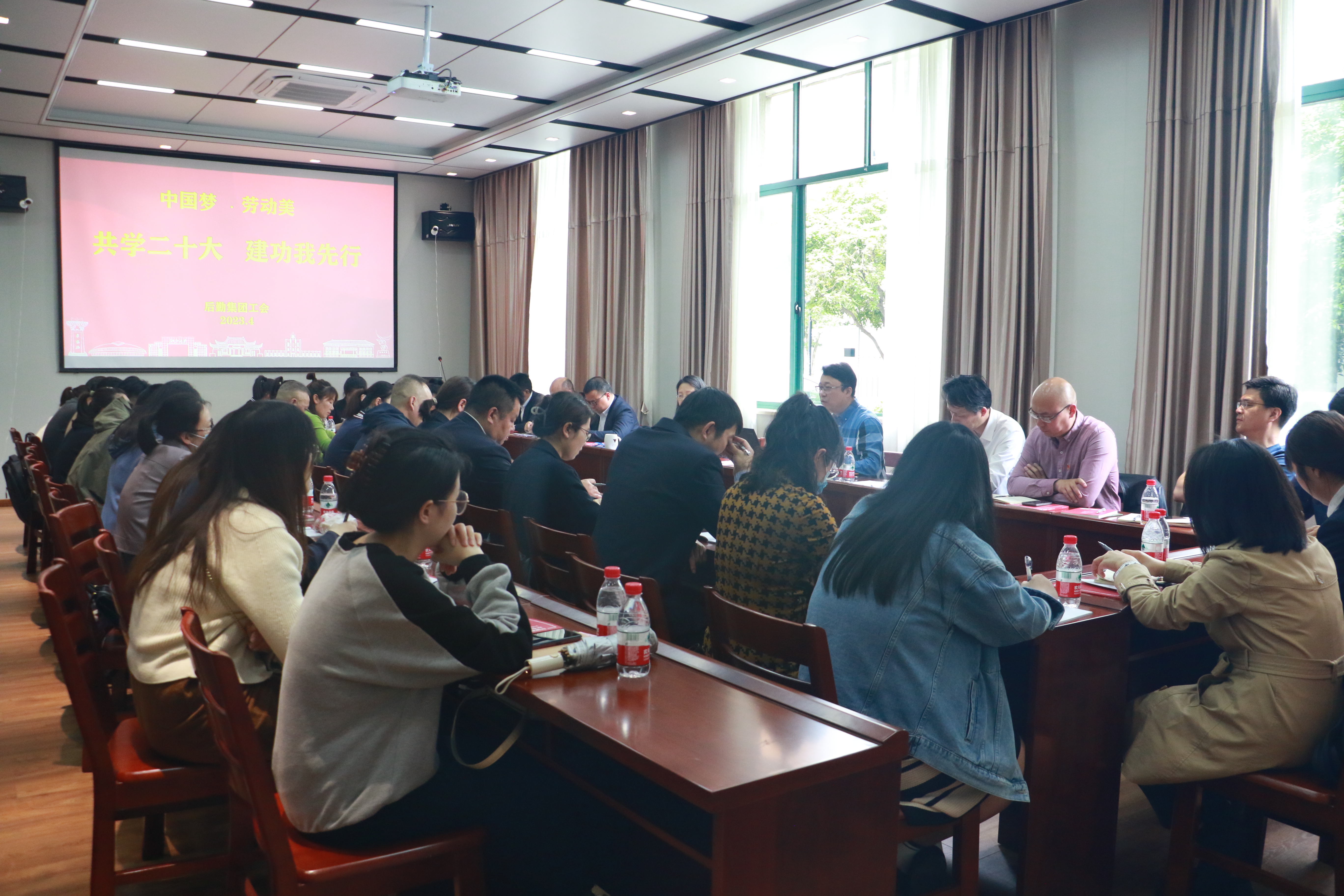 为推动党的二十大精神走进基层一线、走进后勤职工心里,充分发挥后勤集团各类先进的示范引领作用,同时结合后勤集团开展习近平新时代中国特色社会主义思想主题教育,4月28日下午,后勤集团工会在职工之家举行主题为“共学二十大 建功我先行”学习交流会,35名集团先进员工代表参加。集团党委书记兼副总经理姚信为全体代表作专题报告,会议由集团党委副书记、纪委书记、工会主席刘辉文主持。