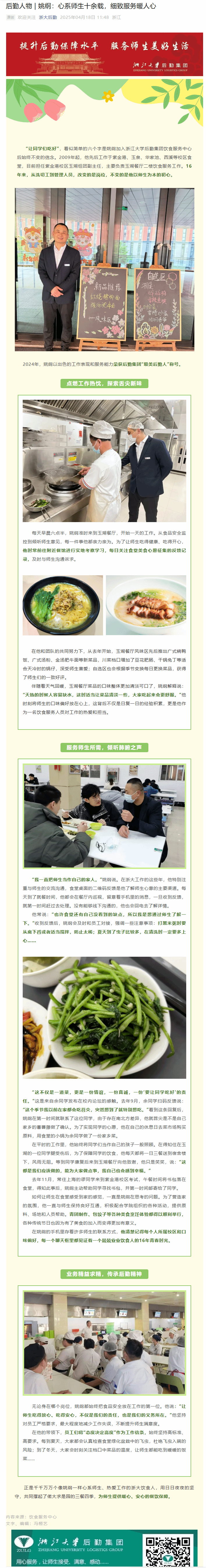 后勤人物 | 姚纲:心系师生十余载,细致服务暖人心