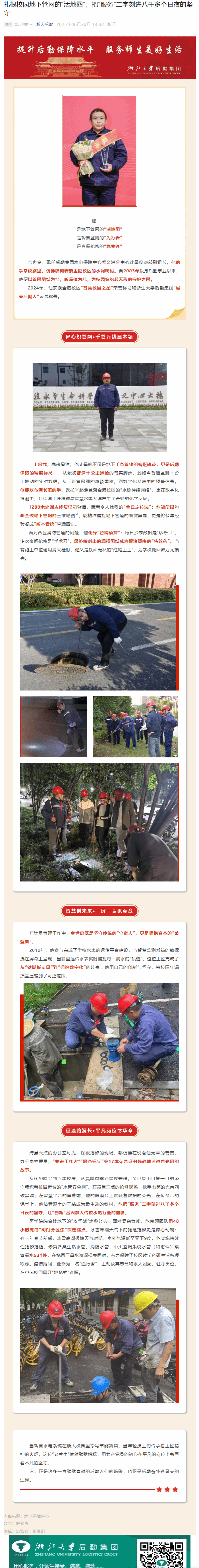 扎根校园地下管网的“活地图”,把“服务”二字刻进八千多个日夜的坚守