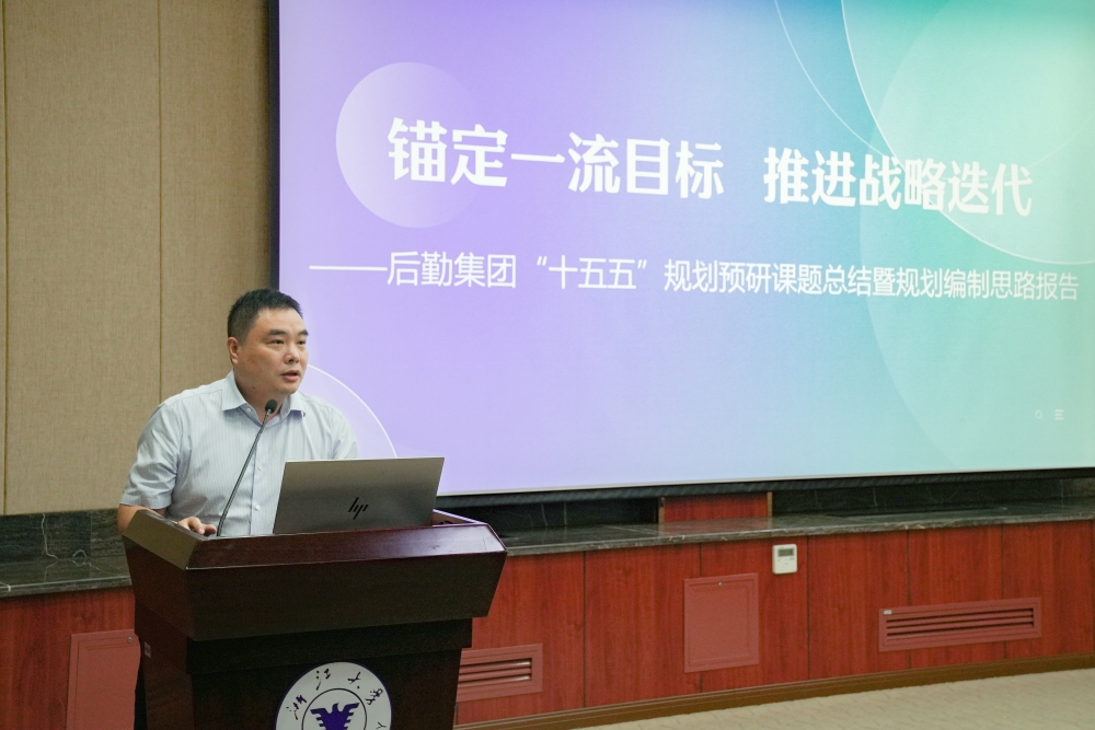 后勤集团党委书记、董事长姚信在会上讲话,后勤集团党委副书记、总经理吕斌主持会议,后勤集团党委副书记、纪委书记高略做后勤集团“十五五”规划预研课题总结暨规划编制思路报告。
