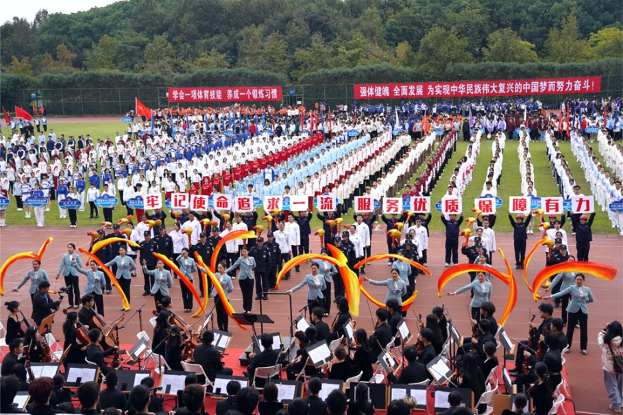 开幕式入场仪式中,在集团党委书记姚信的带领下,后勤集团方阵格外亮眼,来自饮食中心、科教中心、水电中心、求是物业的64名后勤职工精神饱满,步伐整齐。主席台前,伴随着充满活力与节奏感的彩带舞,“牢记使命、追求一流、服务优质、保障有力”的口号铿锵有力,充分展现出了后勤人的自信与朝气。