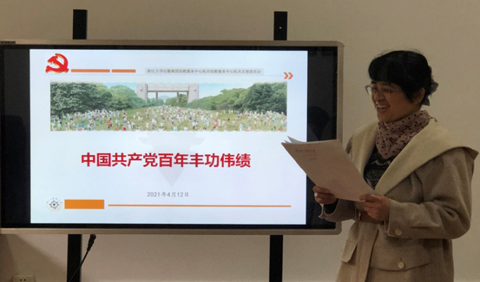4月12日下午,在浙江大学西溪校区西三教学楼三楼,幼教中心机关支部开展党课学习,支部书记沈玲为支部同...